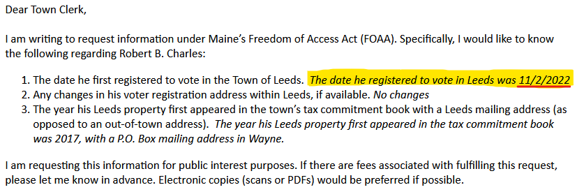 Charles did not even register to vote in the State of Maine until November of 2022.